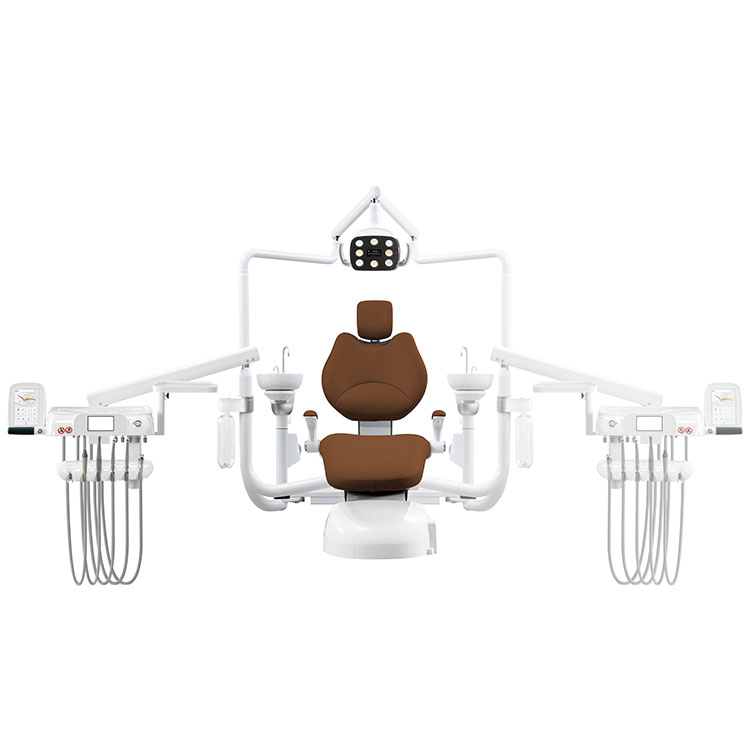 • 4 estantes para instrumentos diseñados con un panel separado • Equipado con succión de agua/aire para una operación conveniente • El brazo giratorio de 90 grados brinda más imaginación • Los pequeños estantes para asistentes brindan más lugares para la operación con 4 manos de los médicos • Cabezal de succión fuerte y débil de acero inoxidable equipado |