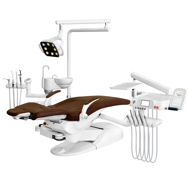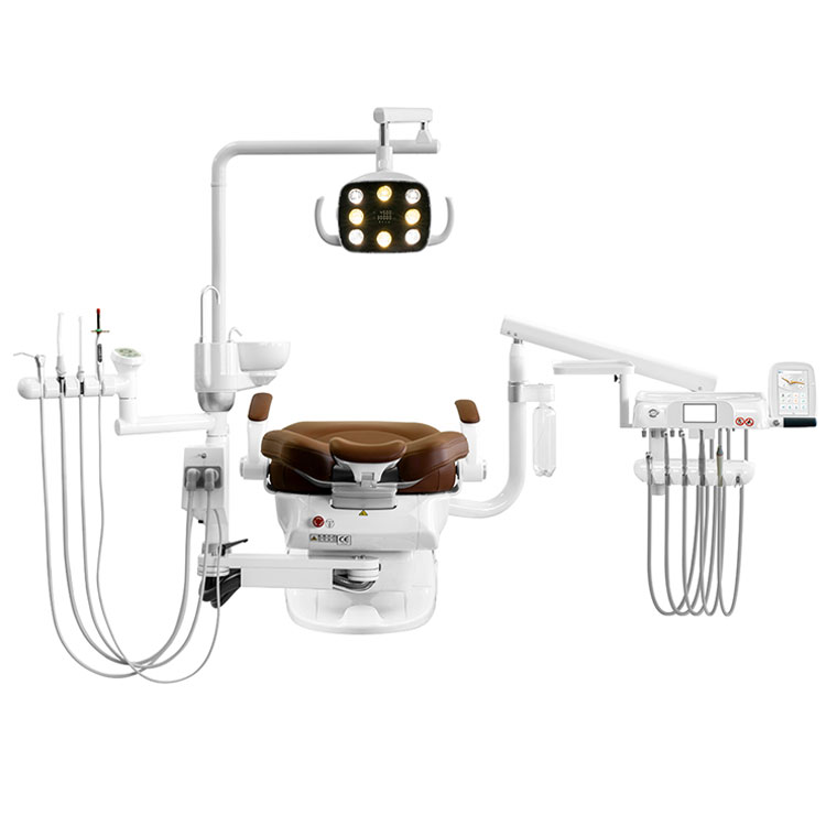 Sillón dental MKT-900 con operación con mano izquierda y derecha, económico pero no simple, se compromete a buscar la combinación perfecta entre operatividad práctica para los médicos en el tratamiento clínico y comodidad para los pacientes.