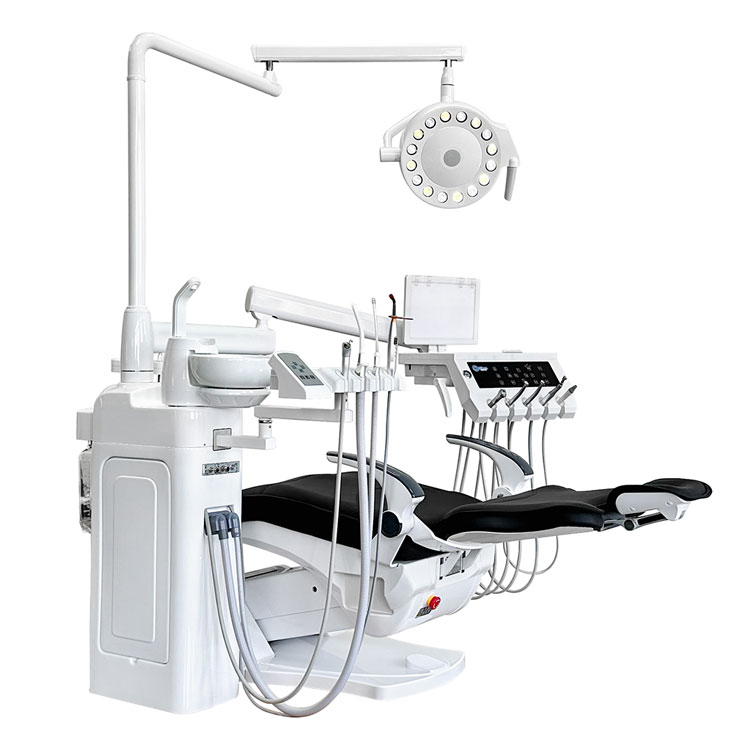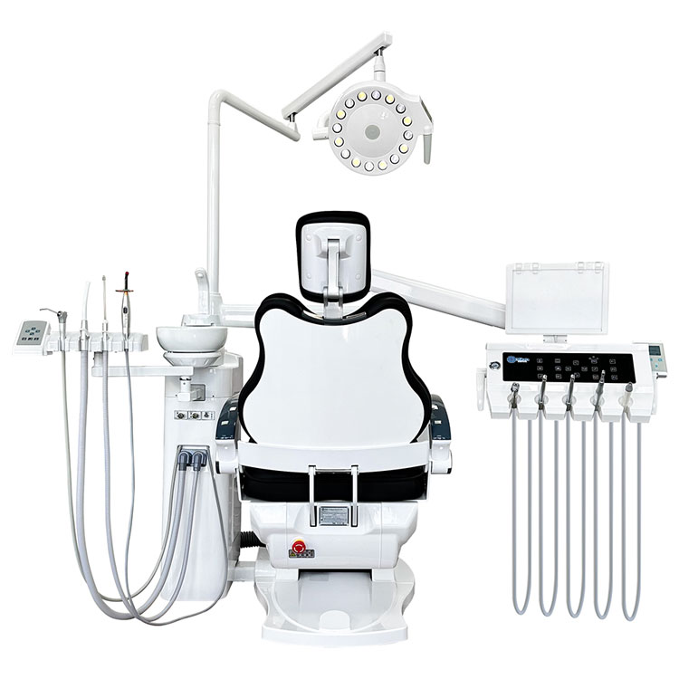 • Diseño multifuncional • Con una carga máxima de 150 kg • Palanca de control suave • Diseño de elevación conveniente • Movimiento/llenado de taza/lavado de escupidera/soplado de virutas/control de agua/aire • Funciones mejoradas: control de luz dental agregado, restablecimiento de la posición de tratamiento, posición de escupir y primeros auxilios, liberando las manos del médico y concentrándose en el tratamiento |